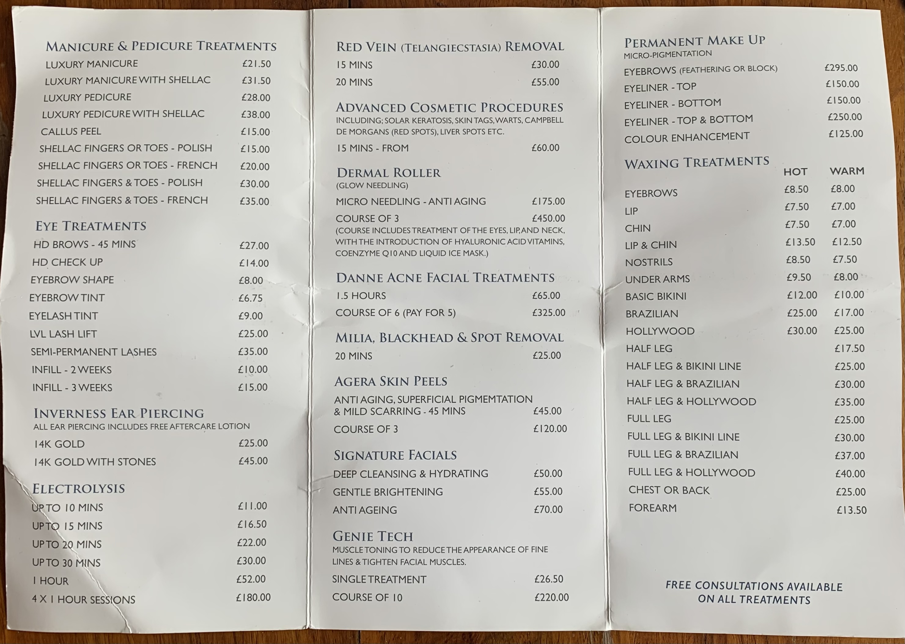 Sk:n also do limited amounts of electrolysis, this is not advertised on their website but is available. I personally only know one person getting their electrolysis done there so information is slightly less available.